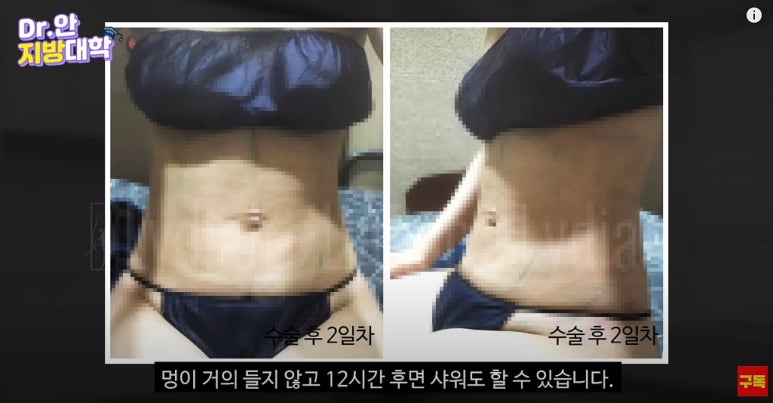 On the day of surgery, we applied our Lydian Quick Return dressing. She returned the next day; these photos were taken after removing the dressing and before putting on the compression garment. Bruising was minimal, and showering is allowed after 12 hours. Some soreness is normal—similar to how you’d feel after doing a couple hundred sit-ups when you’re not used to them.